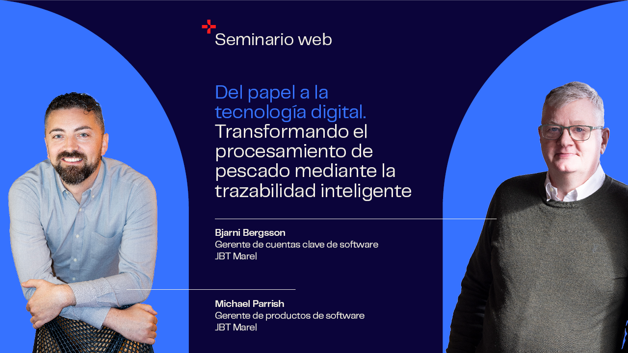 Bjarni Bergsson, pionero en software para el procesamiento de pescado, y Michael Parrish, gerente de productos de software en JBT Marel, explican por qué los sistemas digitales están impulsando un cambio positivo en la industria. Y cómo los procesadores pueden superar los obstáculos para asegurar el futuro de sus negocios, reducir la presión sobre los márgenes de ganancia y construir una industria más sostenible.